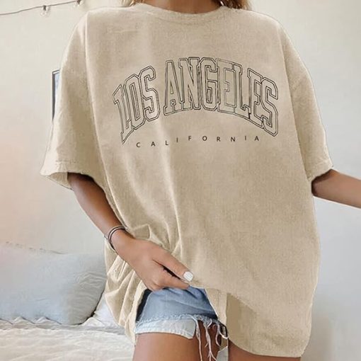 Tomwell T Shirt Damen Oversized Mode Lose Rundhals Kurzarm Sommer Oberteile Vintage Drucken Bluse Streetwear Sport Oberteile Vintage Sweatshirt …