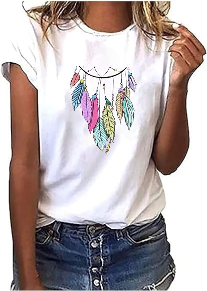 Weißes T Shirt Damen Locker Kurzarm T Shirt O Ausschnitt Tops Ausgefallene T Shirts Damen Liebesdruck Glitzer Shirt Damen Tägliche Pullover Tshirt …